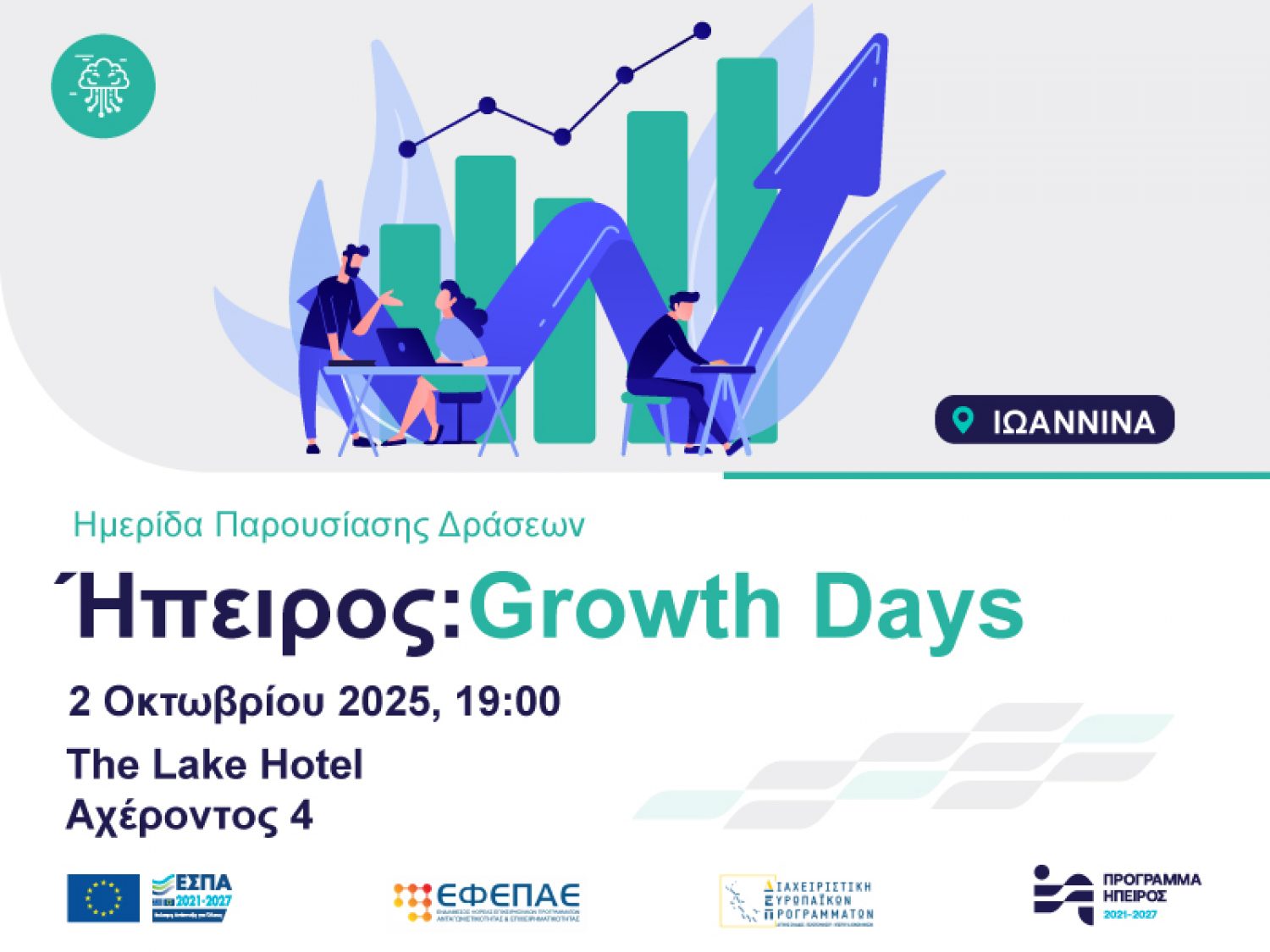 Σας προσκαλούμε στην Ημερίδα “Ήπειρος: Growth Days” για να μάθετε όλες τις νέες δράσεις του Προγράμματος Ήπειρος 2021–2027:
